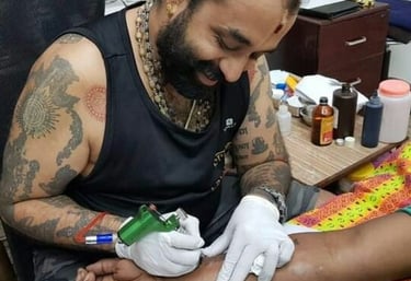 Guided by Giridhara Bramhanyapura (Girish), a spiritual guide and sacred tattooist with over 25 years of experience, this practice is rooted in an ancestral lineage from Bramhanipura, Karnataka — a temple village tradition steeped in Sanatana wisdom, ritual discipline, and lived spiritual heritage.