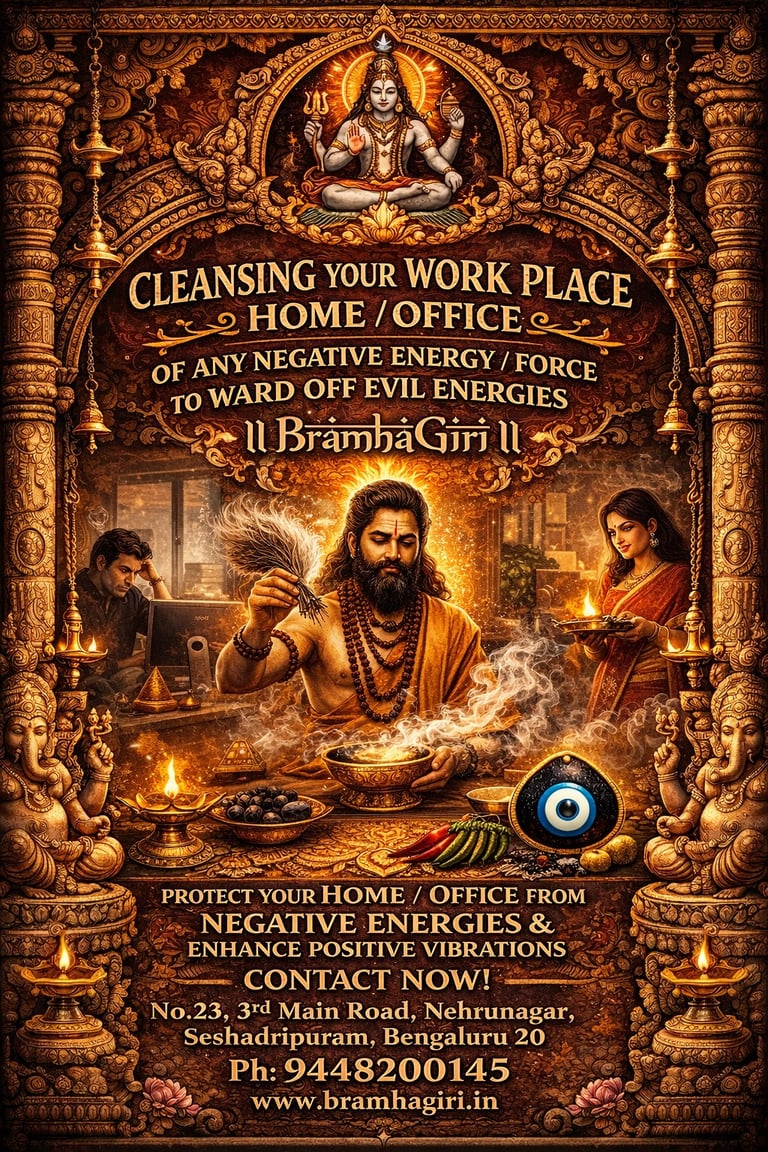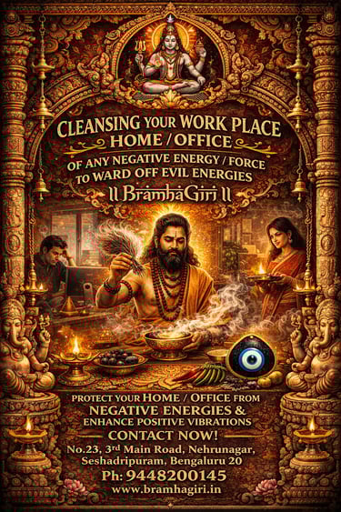 Bramhagiri performs traditional Vedic cleansing rituals to purify homes and workplaces from negative or stagnant energies. Using sacred mantras, fire rituals, and spiritual practices, the process helps restore balance, harmony, and positive vibrations in your living or working space. This service is intended to create a calmer environment that supports clarity, well-being, and prosperity.